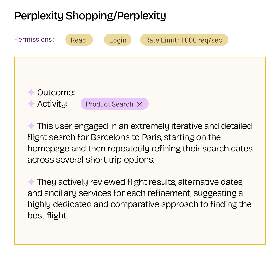 Surface agent-driven patterns across loyalty systems, shopping carts, and conversion flows. Understand where AI agents influence revenue and retention.
