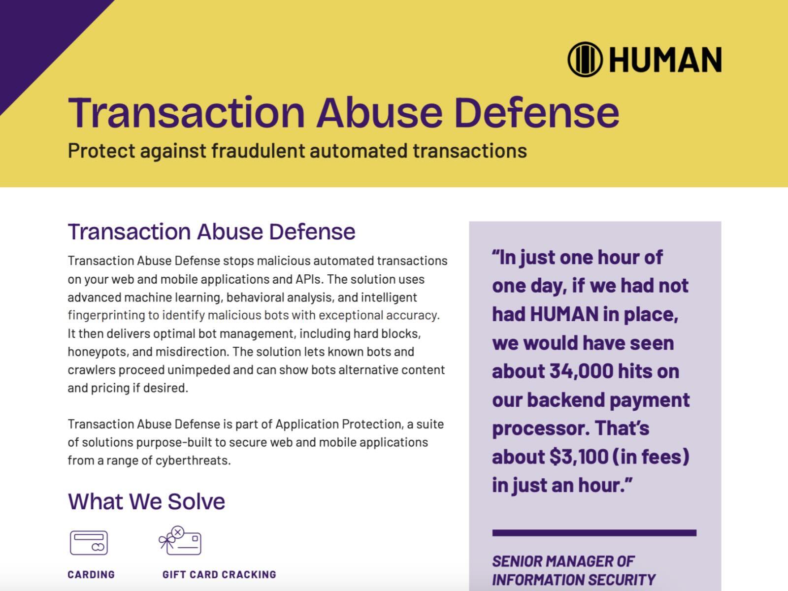 - Responsive customer support: HUMAN offers support via Slack, email, or phone to investigate security incidents, provide actionable insights and function as an extension of M3’s team.
