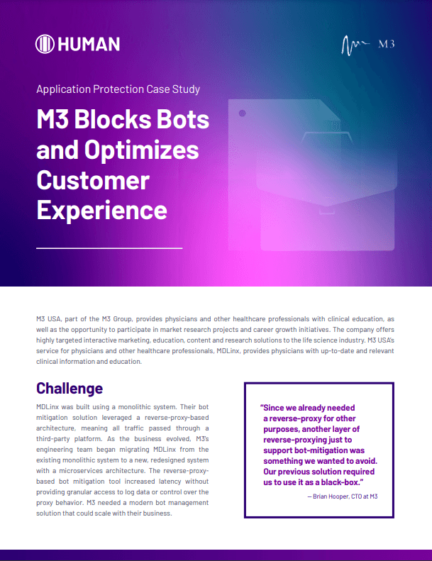 M3 turned to Application Protection a cloud-based and infrastructure-agnostic solution for detecting and mitigating bad bots.
