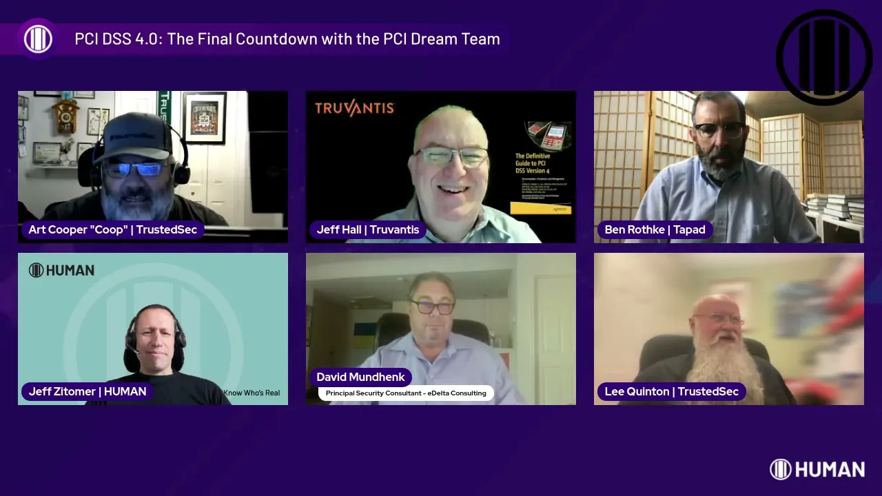 Enter the PCI Dream Team: Art Cooper, Ben Rothke, Jeff Hall, Lee Quinton and David Mundhenk. Joining HUMAN’s PCI expert Jeff Zitomer, this group of PCI DSS veterans delve into requirements 6.4.3 and 11.6.1, and share how organizations can achieve compliance.