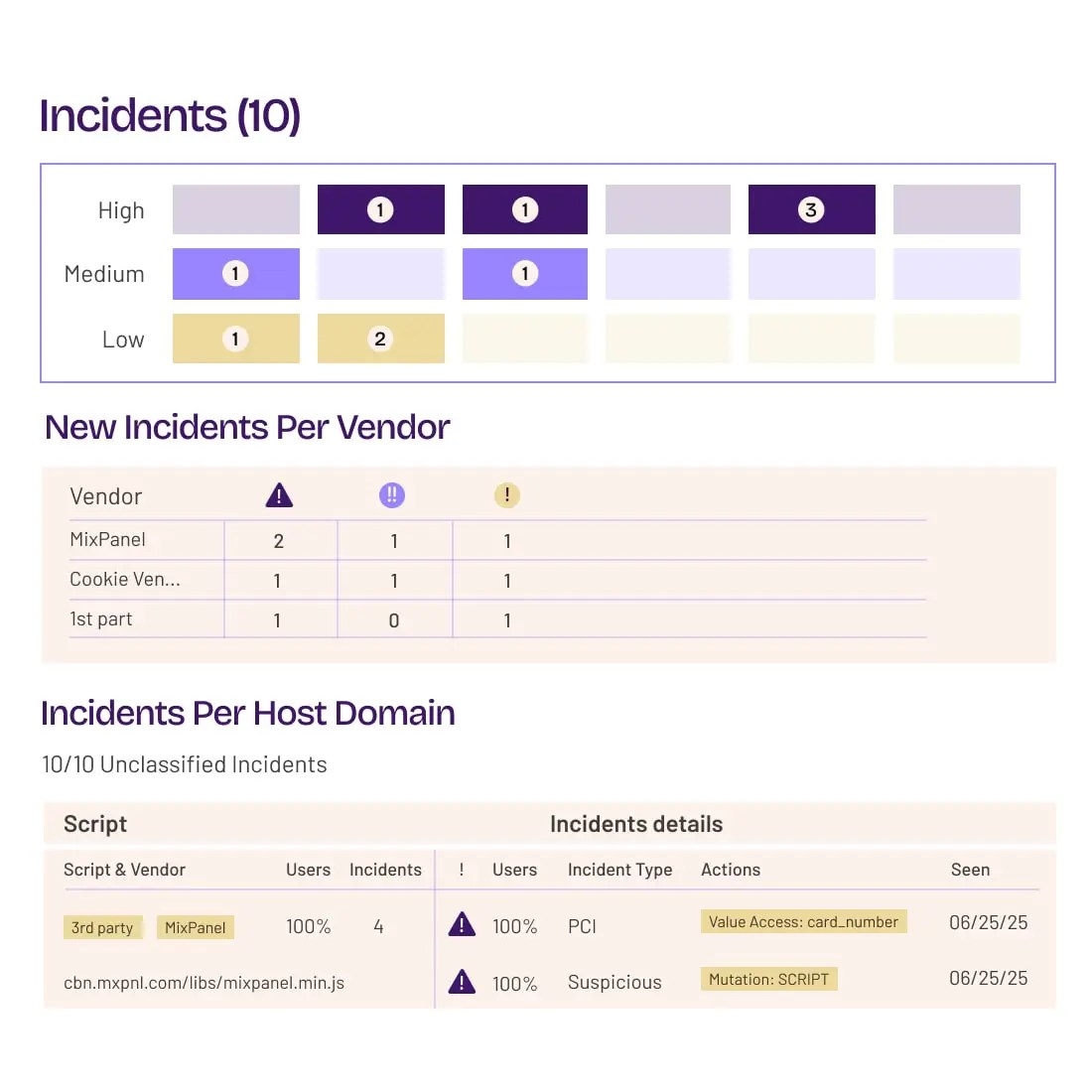 Analyze 1st- and Nth-party scripts for provenance, vulnerabilities, cookies, and behaviors—like DOM access, storage reads, sensitive data handling, and risky-domain communications.